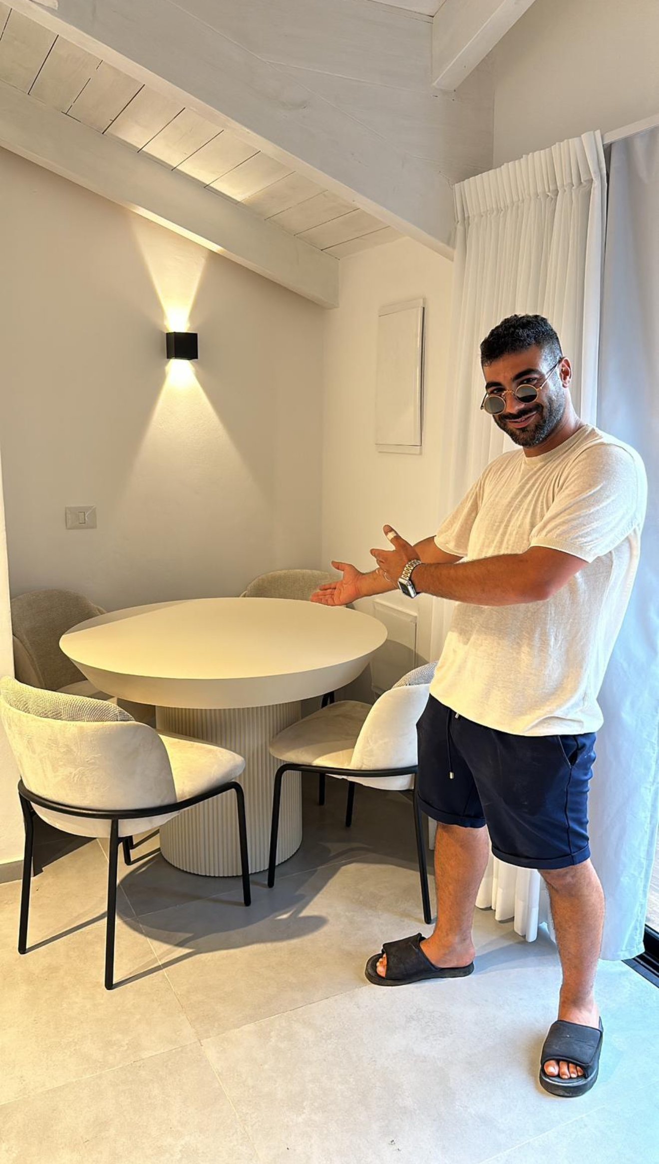 שולחן אוכל עגול בקו מודרני ונקי, עם פלטה מעוגלת בגימור חלק ורגל מרכזית רחבה בעלת חריצים אנכיים עדינים המוסיפים תחכום וטקסטורה עיצובית לחלל. המבנה העגול מייצר תחושת אינטימיות סביב השולחן ומתאים במיוחד לפינות אוכל המעוצבות בסגנון עכשווי.
